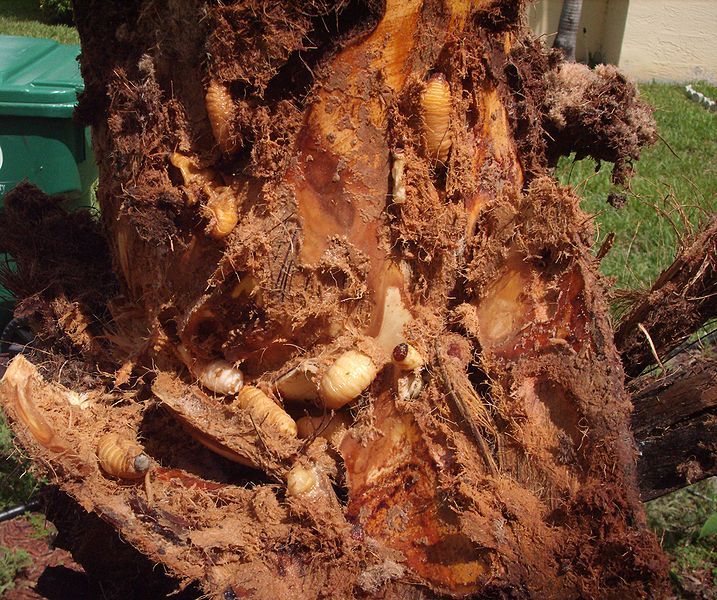 يُهاجم أكثر من 900 نوع من الآفات الحشرية أشجار جوز الهند، من بينها خنفساء وحيد القرن، وسوسة النخيل الحمراء، وسوس جوز الهند. يعتمد المزارعون حاليًا بشكل كامل على المبيدات الحشرية التي تقضي على الأعداء الطبيعيين لهذه الآفة.